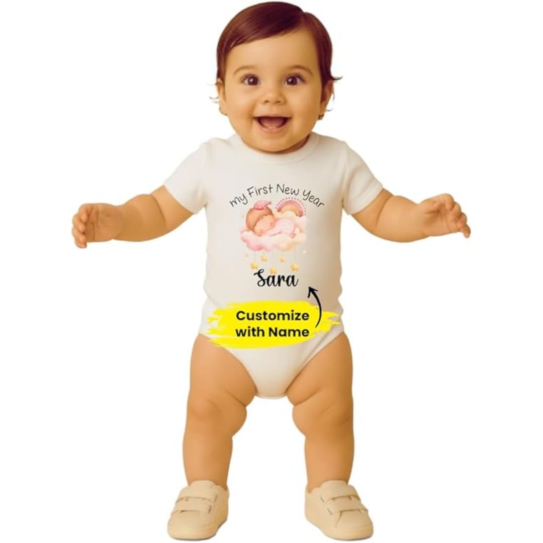 Celebrate your baby’s very first New Year with a soft, comfortable, and adorable Personalised 1st New Year Baby Romper. Designed for both style and comfort, this cotton bodysuit keeps your little one cozy while making the moment even more special.