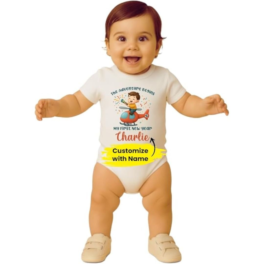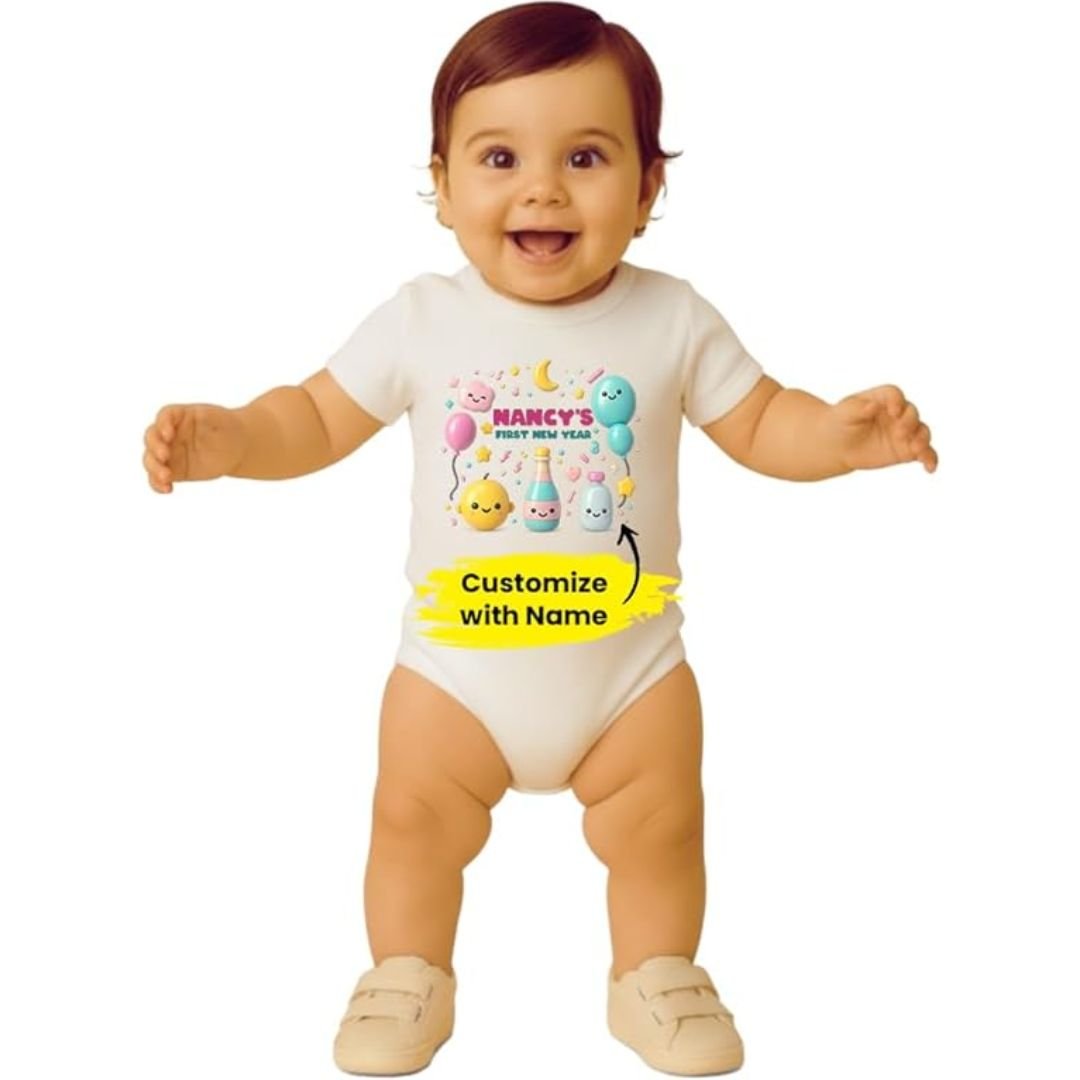 Personalised 1st New Year Baby Romper Cotton Short Sleeve Unisex Bodysuit for Newborns, Infants & Toddlers