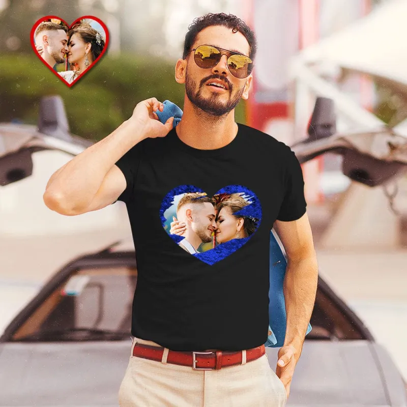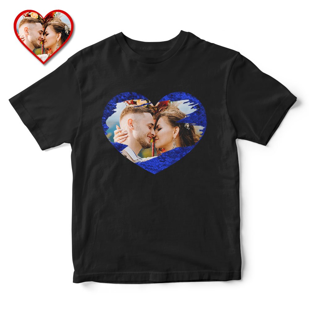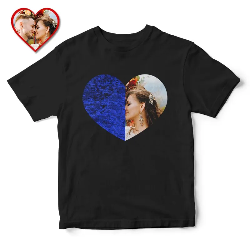 Personalized Photo Sequin T Shirt Heart Reveal Gift