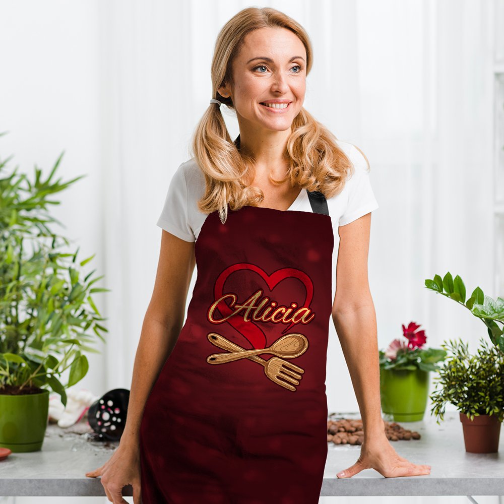 Custom Apron – Personalized Heart Kitchen Apron with Custom Name