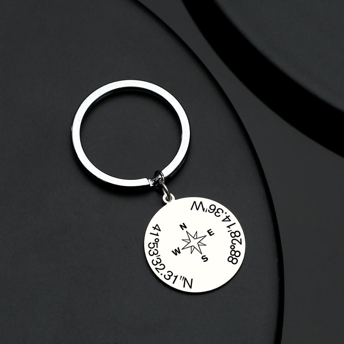 Keychain Custom Coordinates | Latitude Longitude with Compass