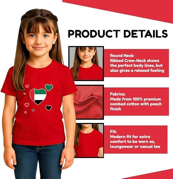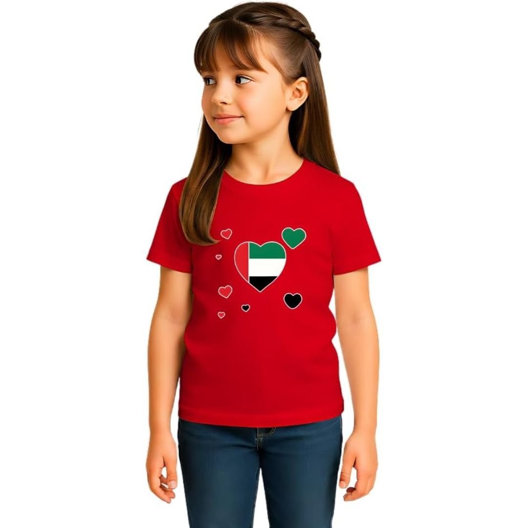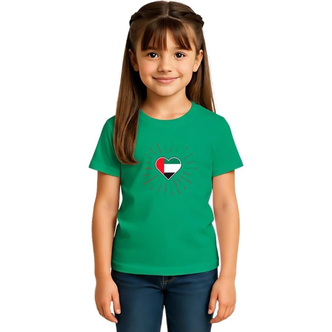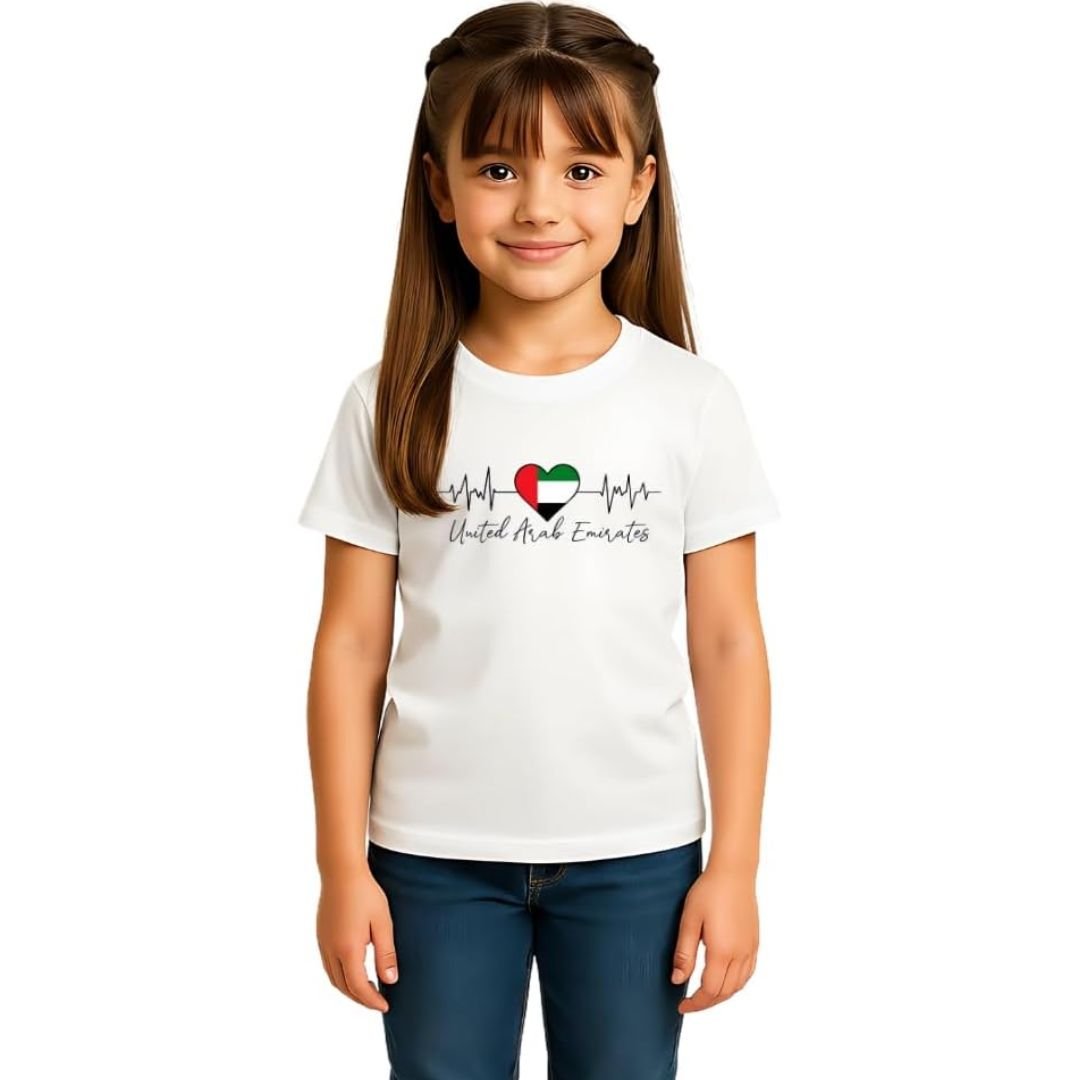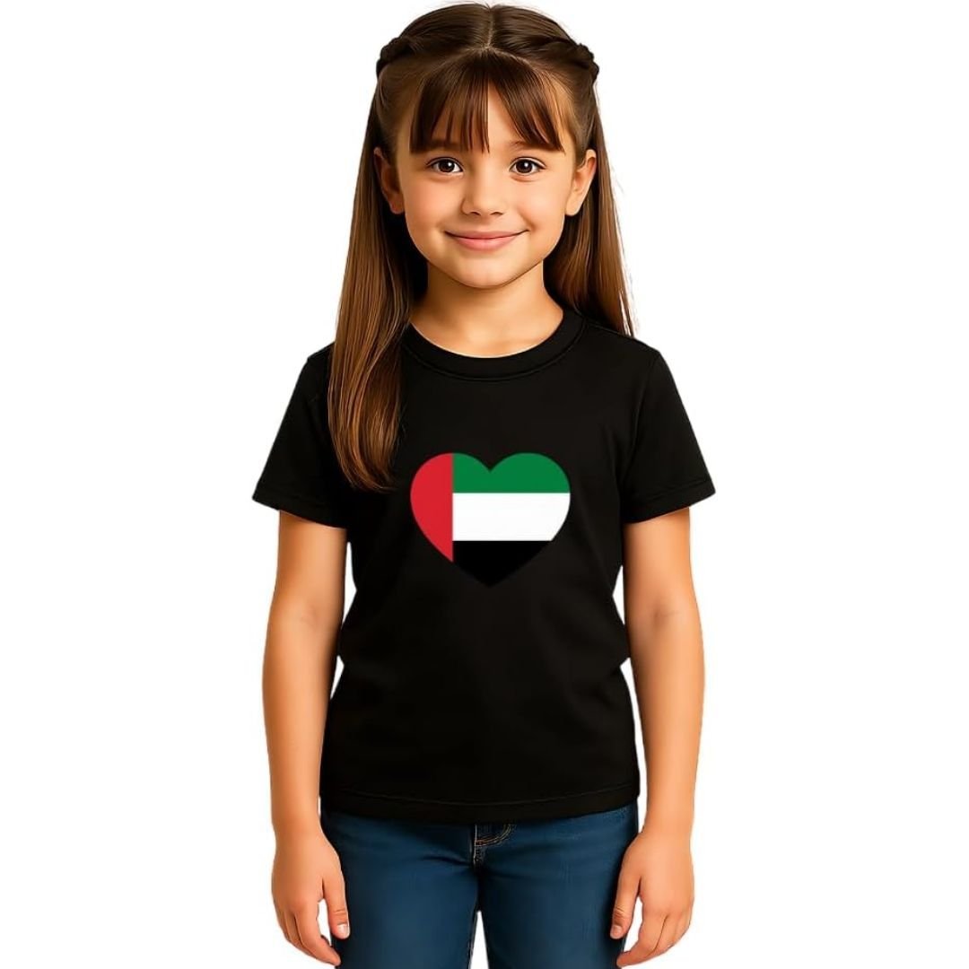 The UAE Round Neck T-Shirt for Girls combines quality, comfort, and national charm—making it a must-have in every young girl’s wardrobe.