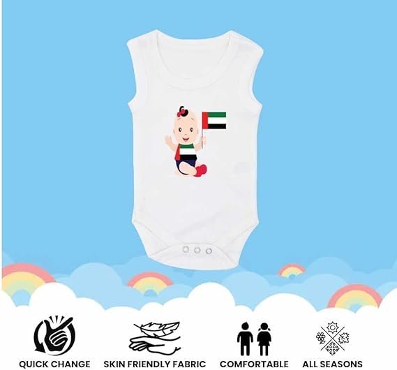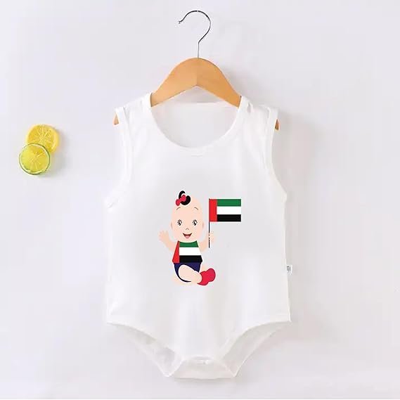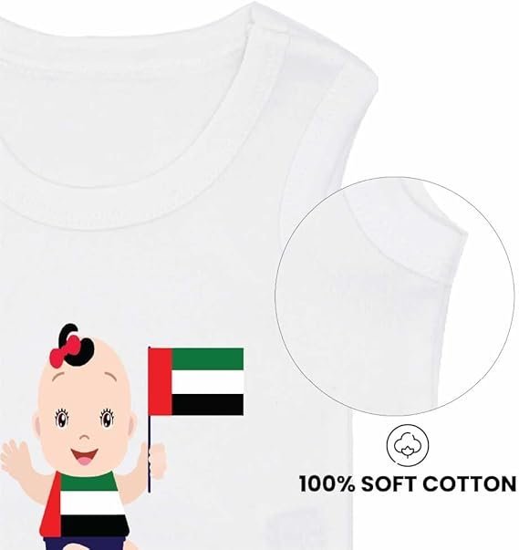 Dress your baby in the UAE National Day Sleeveless Romper—soft, stylish, and made for comfort. It’s a wonderful way to celebrate the nation’s spirit while keeping your little one happy and adorable.