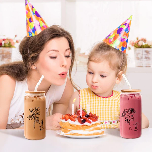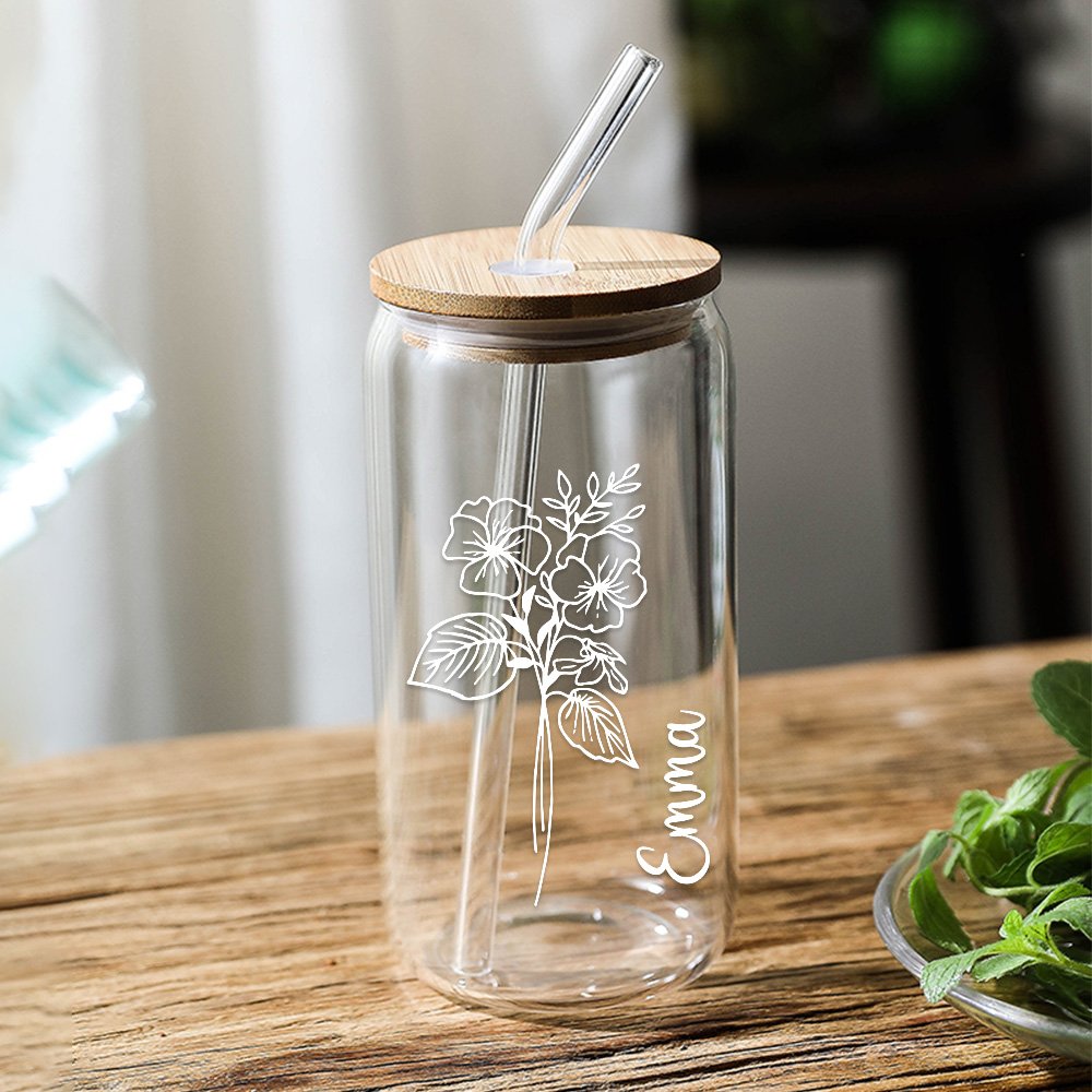 Celebrate your loved ones with this personalised name Bridesmaid Gift Glass Can featuring a beautiful birth flower design. It is a thoughtful and stylish gift that suits many special moments. You can give it to mothers, friends, family members, or bridesmaids to make them feel truly special.