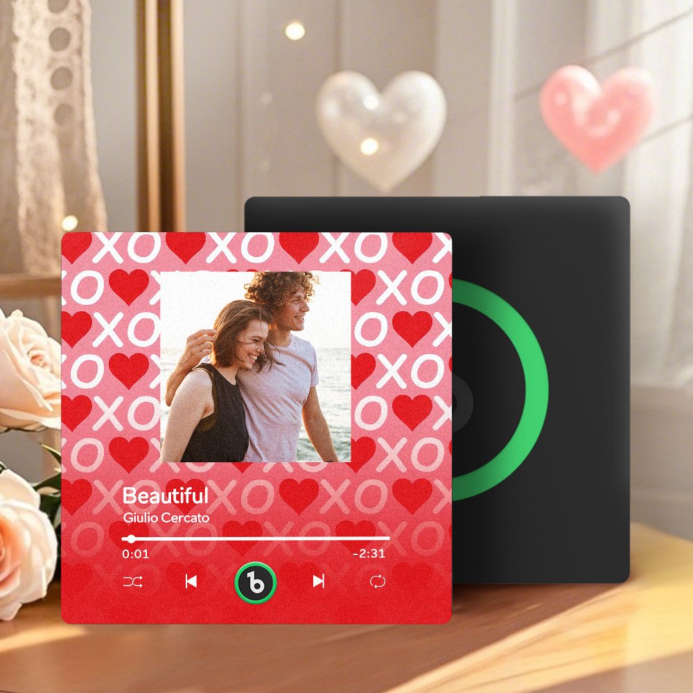 Celebrate meaningful memories with this Fridge Magnet Frameless 4.0 Personalized Music XOXO with Red Hearts, created to combine love, photos, and music in one elegant piece. A romantic Valentine’s gift full of warmth and emotion. ❤️