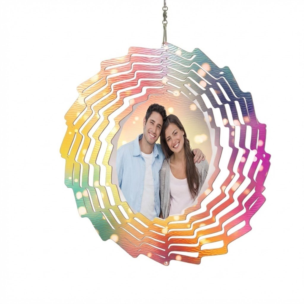Add charm and movement to your space with a Photo Wind Spinner Chime Custom Couple Gift, a beautiful keepsake that displays your favorite memories while gently spinning in the breeze. Perfect for both indoor and outdoor décor.