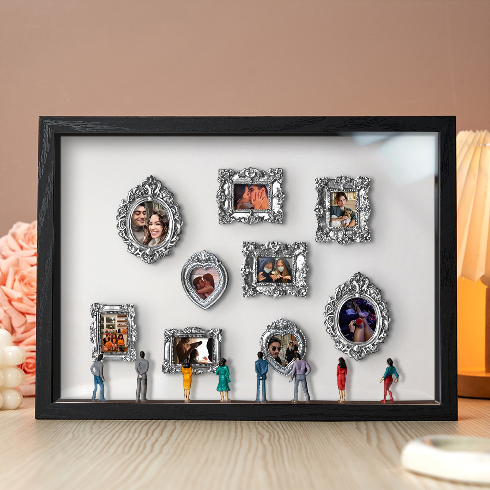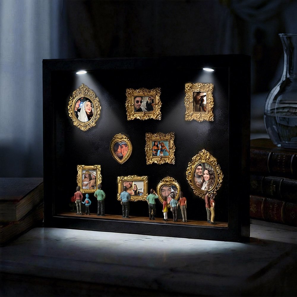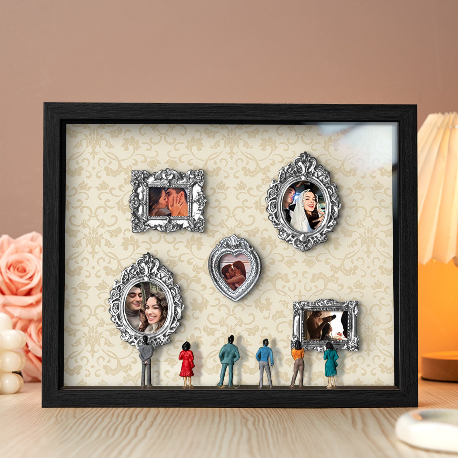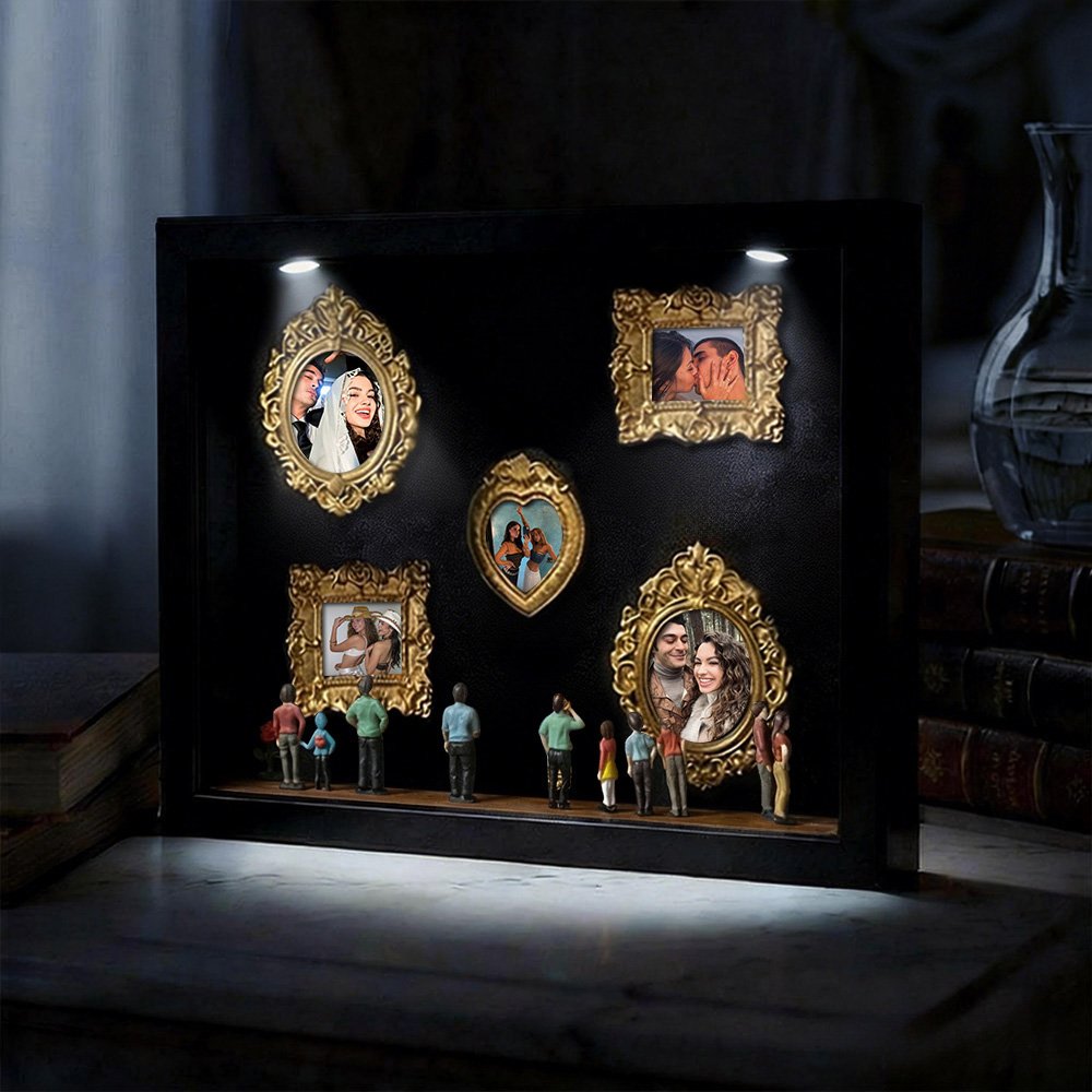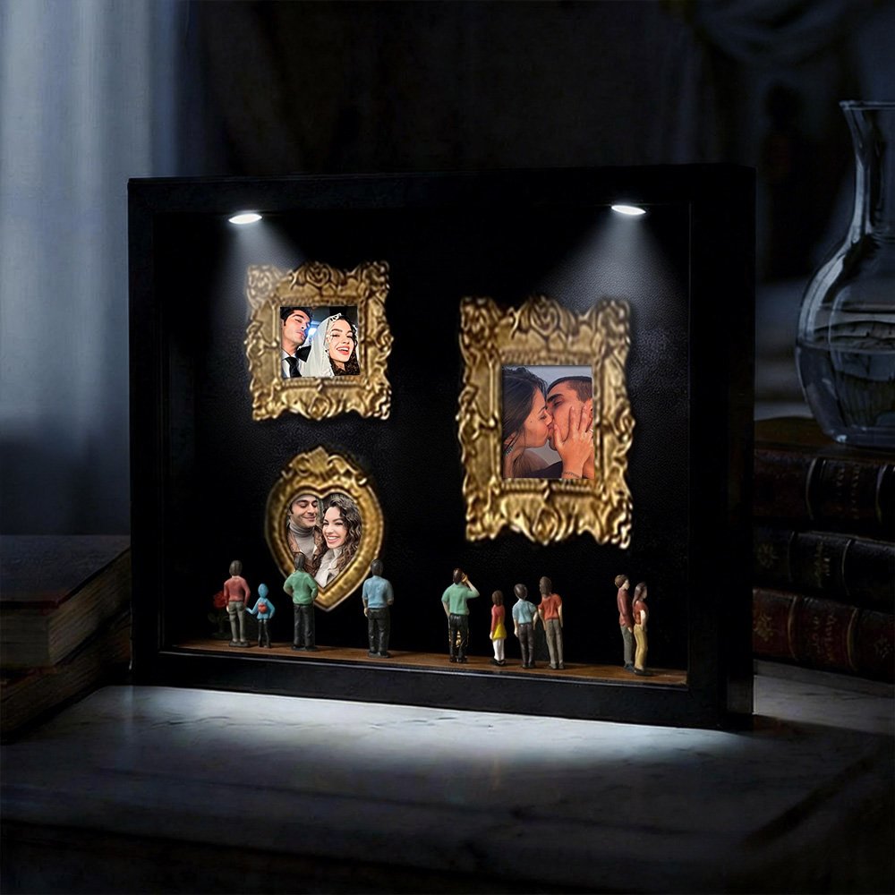 Celebrate your love story with a personalized shadow box that tells your unique journey. This handcrafted piece, with spotlights and mini figures, adds charm and warmth to any space—perfect for anniversaries, birthdays, or as a heartfelt gift.